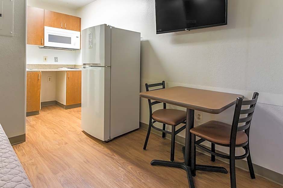 This nonsmoking studio features a kitchen, dining room, work area and a queen-sized bed.